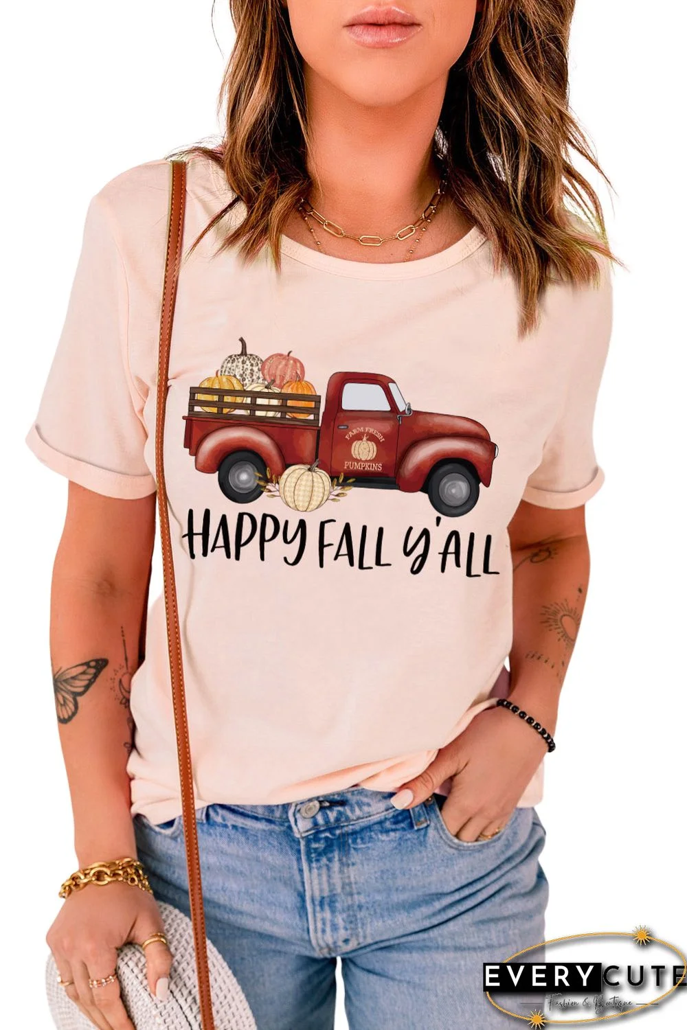 | Product Name | Pink Happy Fall Pumpkin Truck Graphic Tee LC25218186-10 |